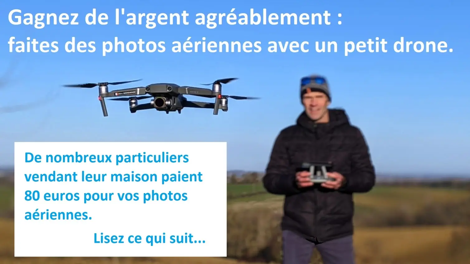 Vous faites des photos/vidéos aériennes que vous vendez aux particuliers vendant leur maison : vous empochez 80 euros pour 5 minutes de travail.